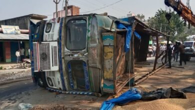 #Barabanki: गेहूं लदा ट्रक अनियंत्रित होकर पलटा